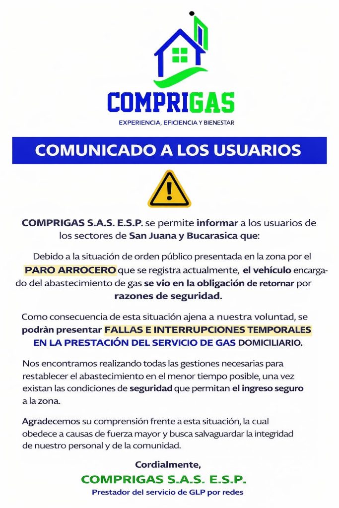 POSIBLES INTERRUPCIONES TEMPORALES DEL SERVICIO EN BUCARASICA Y LA SAN JUANA